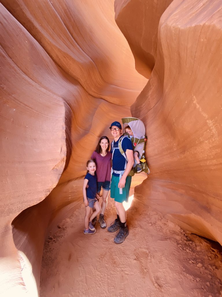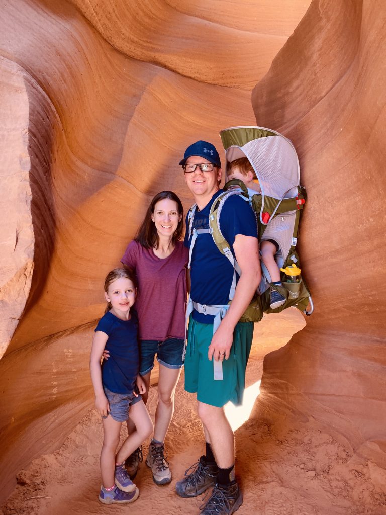 While the canyon was breathtaking, hiking through it was another story. I was constantly trying to keep Beckett safe around the canyon walls and overhangs. There were multiple times I was squatting, shuffling or being helped through the canyon by Jaclyn. The pace was incredibly slow (quarter mile took over an hour) and Brooke was getting restless and pretty much throwing sand everywhere (that continues to be her favorite part). When the guide said we were halfway I almost quit since I figured the odds of keeping B&B happy for much longer was gonna be tough. Sand starting to pour in from the top also didn’t help things. But we kept going!