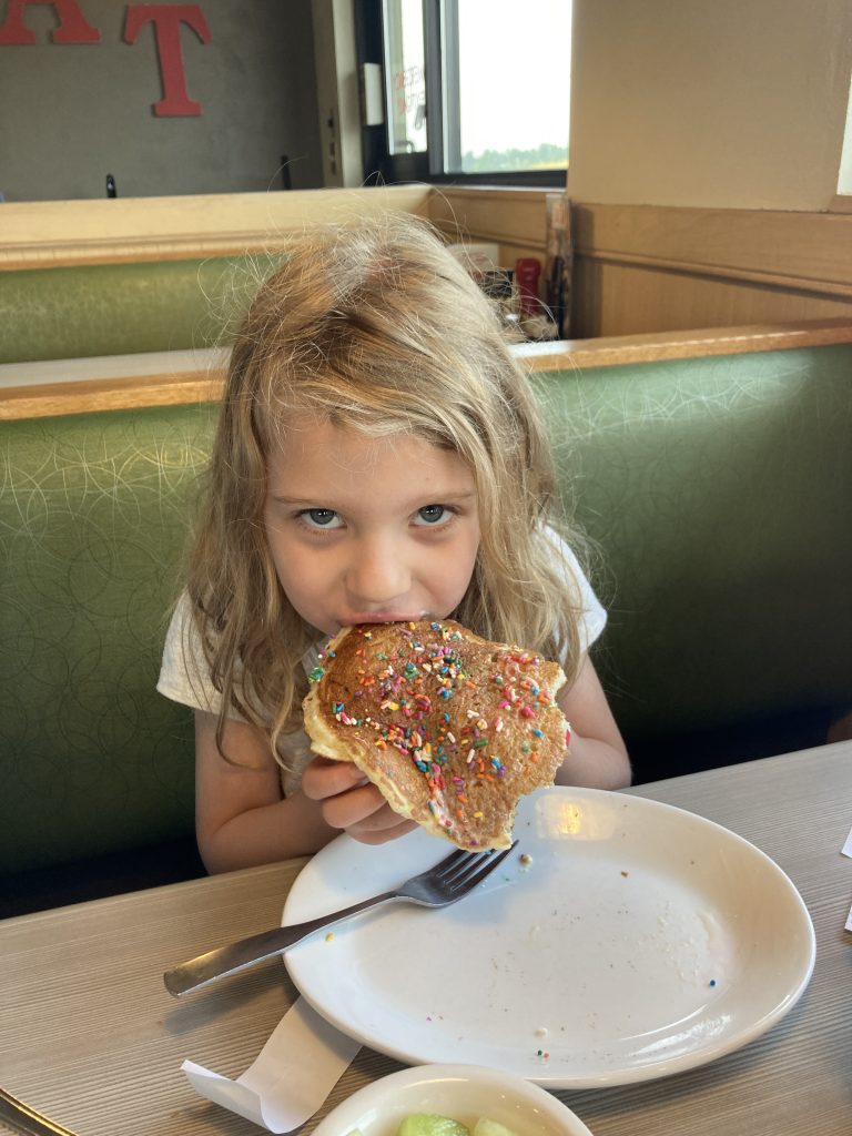 We woke up at the resort and headed out to breakfast at Perkins. We somehow got a booth where Beckett could see the construction work outside and all the tractor trailers stuck in traffic, again, he loved it. Brooke got some special rainbow pancakes with sprinkles and so the kids were in a good mood.
