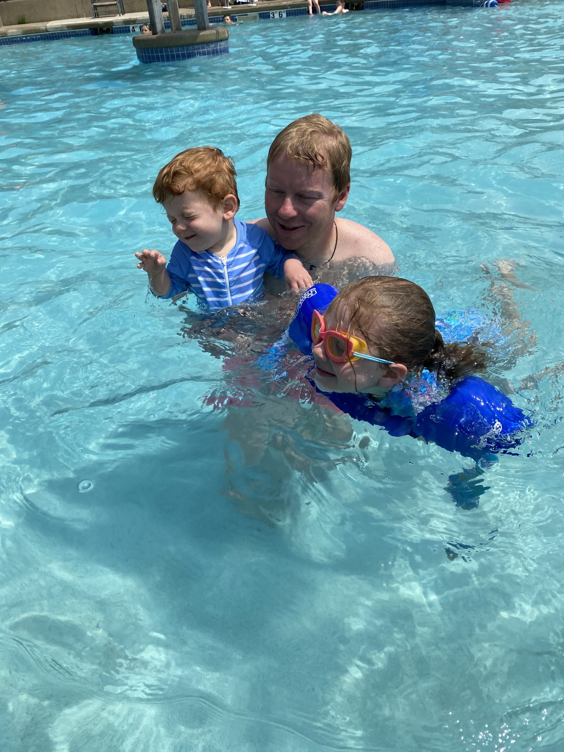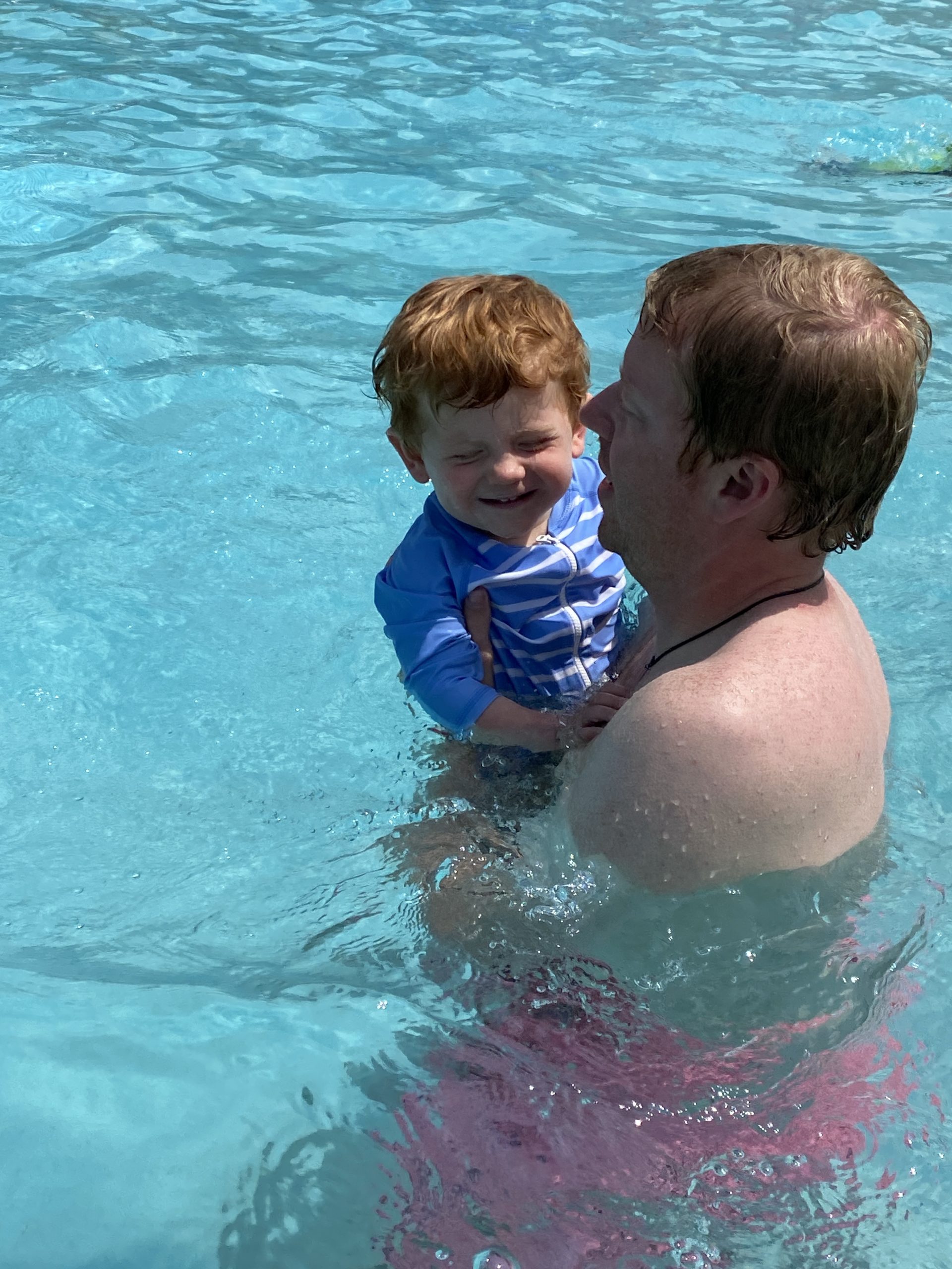 We went back to the resort and checked out but went to the water parks. We tried the outdoor one for about the last hour and finally convinced Brooke to go down one of the big water slides, which she then did like 5 more times. Brooke was really enjoying jumping into the pool and having me pull her up and Beckett was feeling jealous so he tried to do the same. He had a blast being dipped in and out of the water. We also discovered that if he gets his neck wet he giggles like crazy.
